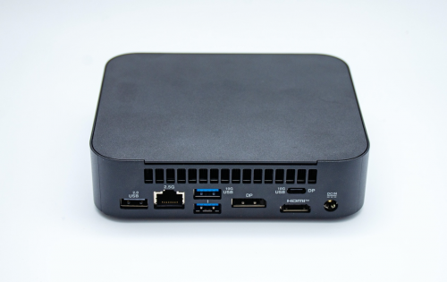 接口方面华硕NUC 14 Elite配置丰富且实用,前置接口拥有1 x USB 3.2 Gen2 Type C、2 x USB 3.2 Gen2 Type A、1 x 3.5mm耳机插孔。后置接口拥有:1 x USB 3.2 Gen2 Type-C with DisplayPort 1.4、2 x USB 3.2 Gen 2 Type–A、1 x USB 2.0 Type–A、1 x HDMI 2.1(TMDS)、1 x DisplayPort 1.4、1 x RJ45 LAN和1 x DC–in。丰富的接口让华硕NUC 14 Elite能够轻松连接各类商用外设,同时最多可连接3个显示屏,实现多屏扩展办公,提升信息展示与处理能力。根据办公需要还可以轻松连接打印机、扫描仪、投影仪等设备,满足企业日常办公的文档处理、会议演示等需求。配备的2.5G以太网接口及Wifi 6E无线网卡则为企业提供稳定的网络连接,确保关键业务数据传输的可靠性。机身侧面还有Kensington锁,提供给有物理防盗需求的用户。