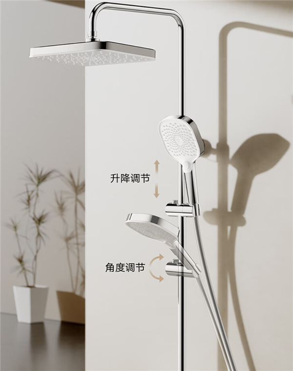 搭配可调节式升降结构,手持花洒的高度、角度可根据不同使用习惯自由调节。