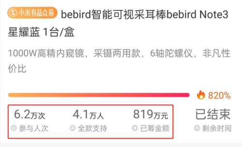 2020年,bebird蜂鸟迎来了发展的高峰期,先是3月产品在小米众筹活动中大放异彩,突破1200万的众筹金额,彰显了消费者对品牌的认可与信赖;11月,内窥镜工厂灵眸智造成立,为bebird蜂鸟的产品研发与生产提供了强有力的支持。