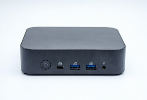 接口方面华硕NUC 14 Elite配置丰富且实用,前置接口拥有1 x USB 3.2 Gen2 Type C、2 x USB 3.2 Gen2 Type A、1 x 3.5mm耳机插孔。后置接口拥有:1 x USB 3.2 Gen2 Type-C with DisplayPort 1.4、2 x USB 3.2 Gen 2 Type–A、1 x USB 2.0 Type–A、1 x HDMI 2.1(TMDS)、1 x DisplayPort 1.4、1 x RJ45 LAN和1 x DC–in。丰富的接口让华硕NUC 14 Elite能够轻松连接各类商用外设,同时最多可连接3个显示屏,实现多屏扩展办公,提升信息展示与处理能力。根据办公需要还可以轻松连接打印机、扫描仪、投影仪等设备,满足企业日常办公的文档处理、会议演示等需求。配备的2.5G以太网接口及Wifi 6E无线网卡则为企业提供稳定的网络连接,确保关键业务数据传输的可靠性。机身侧面还有Kensington锁,提供给有物理防盗需求的用户。